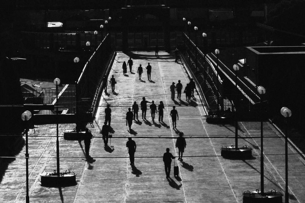 天王寺動物園の上に架かる橋でしょうか?人物を逆光気味に狙った写真、色々なたくさんの人の動きを見事に止められました。もう少し時間が経って撮れば人影が長く斜めになりより効果のあるシルエット写真になりますので次回狙ってください。より素晴らしい写真になるはずです。
